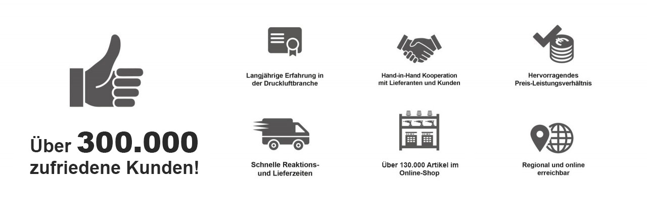 Und wenn doch einmal etwas nicht passt, steht unser Reklamationsmanagement bereit. Sorgfältig verpackt verlassen unsere Druckluft-Produkte das Haus – sollte es trotzdem Grund zur Beanstandung geben, helfen wir Ihnen unkompliziert weiter. Egal ob Rücksendung, Gutschrift oder andere Reklamationen: Wir finden eine Lösung. Schnell, direkt und kundenorientiert.